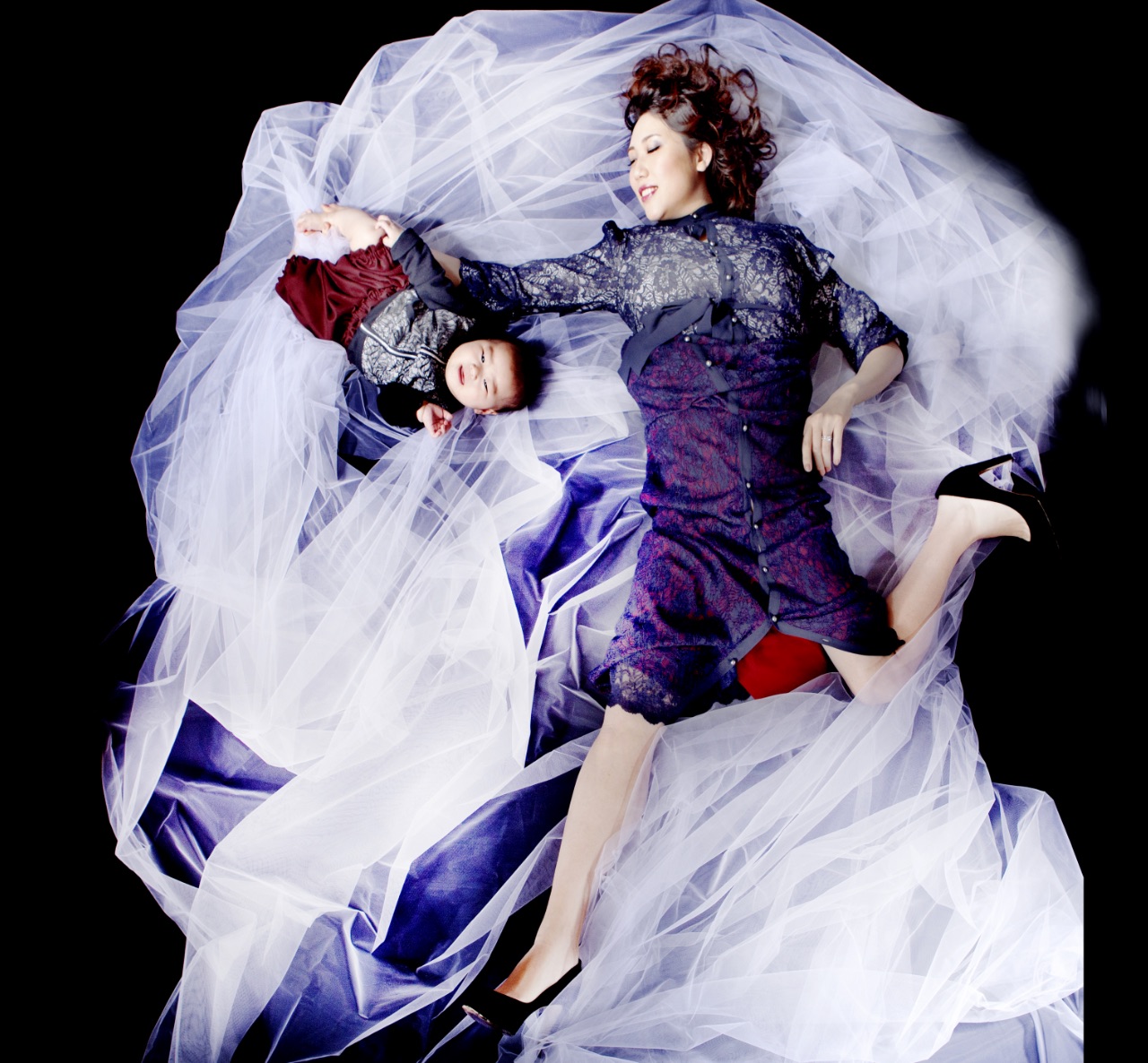 まるでファッションPVの1シーン! 赤ちゃんの愛らしさとママの美しさを最高に引き出す衣装に、一流のヘアメイクとスタイリストもコラボしたアート撮影です。永久保存版。